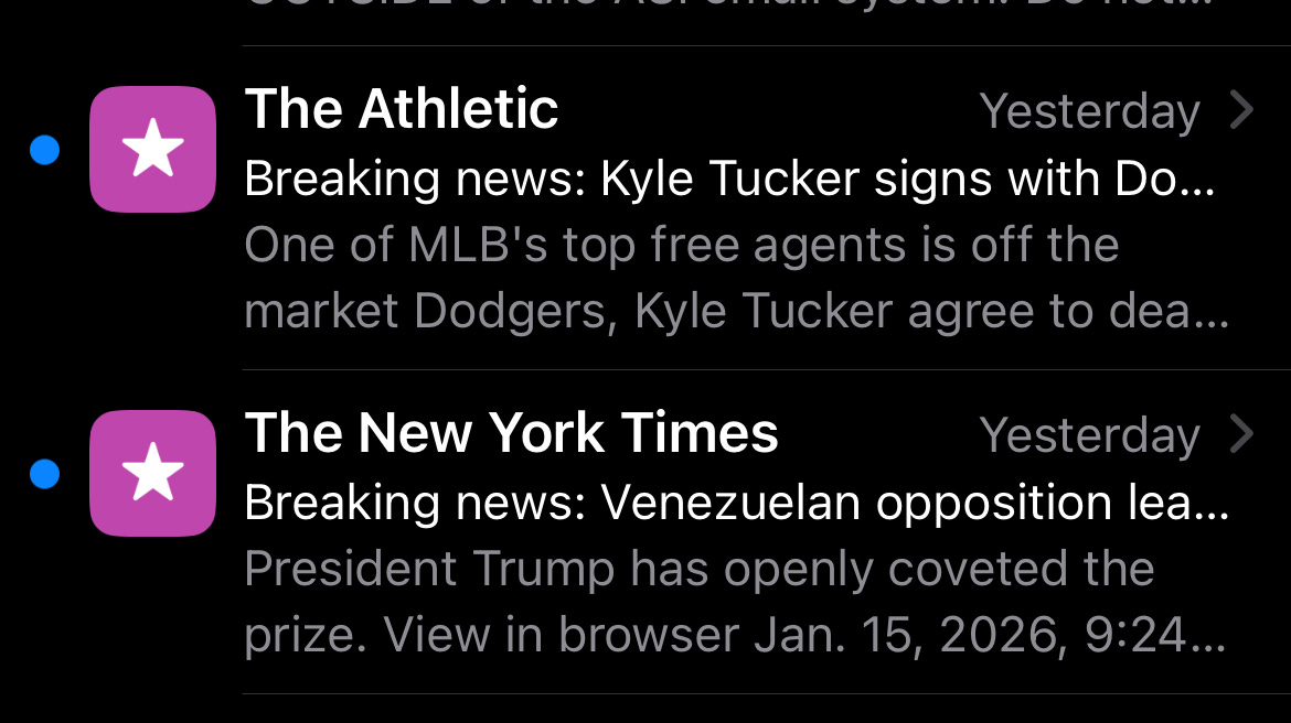 Did Tottenham fire manager Thomas Frank? No, but in doing so I saw that Real Madrid fired Xabi Alonso. What a mess. I look to see if the Sixers won, or at least got away without any fresh injuries during a game that I didn’t stay up late enough to watch. I look to see if there were any late-night tweets from MLB insiders like Matt Gelb or Jon Heyman about the Phillies’ free agency moves.
